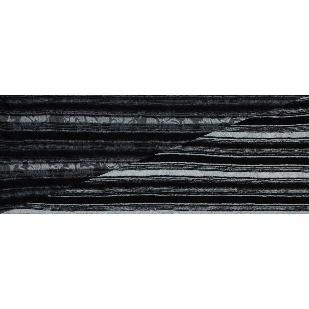 Bonded Wool Knit and Organza - Black Stripes and Floral - Designer Deadstock
