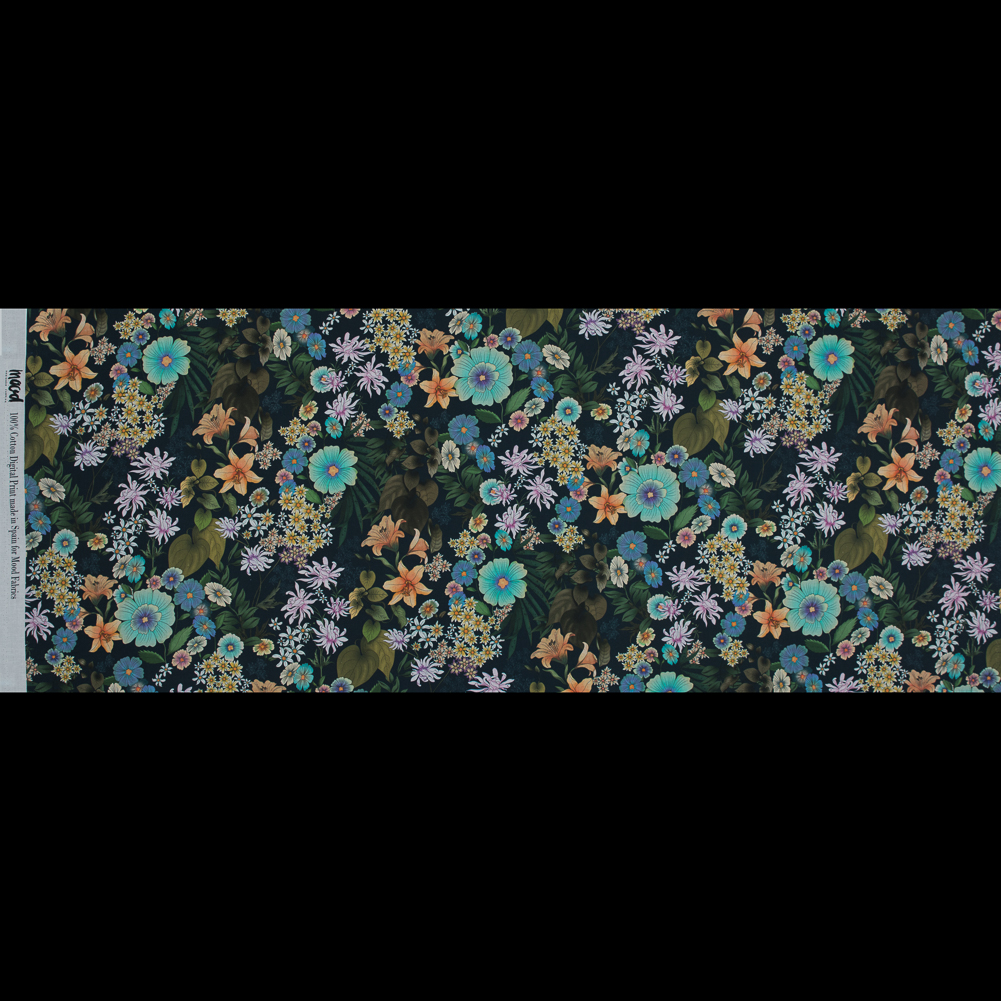 Our Green and Blue Narcissus' Reflection Stretch Cotton Voile is sure to add a dose of dreaminess to your collection. With its blend of comfort, elegance, and breathability, this fabric is ideal for making blouses, dresses, skirts, lightweight scarves, and even curtains!Suggested Projects: Dresses, BlousesContent: 100% CottonStretch: NoneOpacity: TranslucentNamed "Narcissus' Reflection" and included in our Gaia Collection, the soft voile symbolizes the mystery of beauty's reflection which enticed the Greek god Narcissus. Rich hues sit upon a dark backdrop as they create an abundance of flowers over the luxurious woven. Use its easy drape to create blouses, ruffled dresses and more! Thin and lightweight, it is translucent and may require a lining.