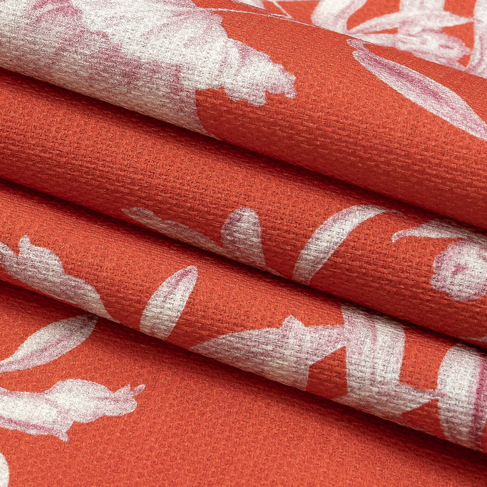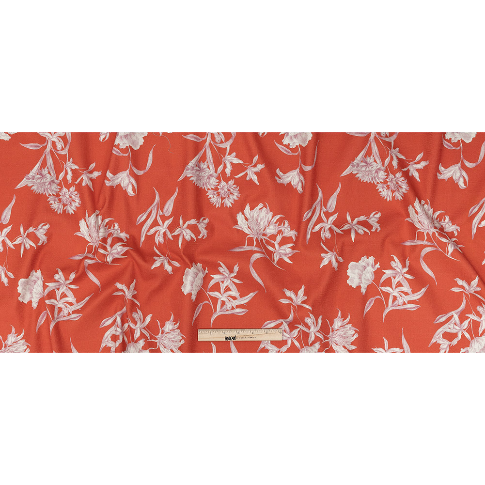 Mood Exclusive Hot Coral Camellia Mirage Stretch Cotton Woven