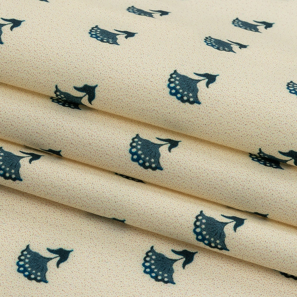 Beat the summer heat with our Mood Exclusive Impala Floral Fans Stretch Cotton Poplin! This gorgeous poplin features a delicate fan-like motif that closely resembles flowers in a deep greenish-blue color that repeats across a luscious cream ground producing an elegantly sophisticated floral print.
