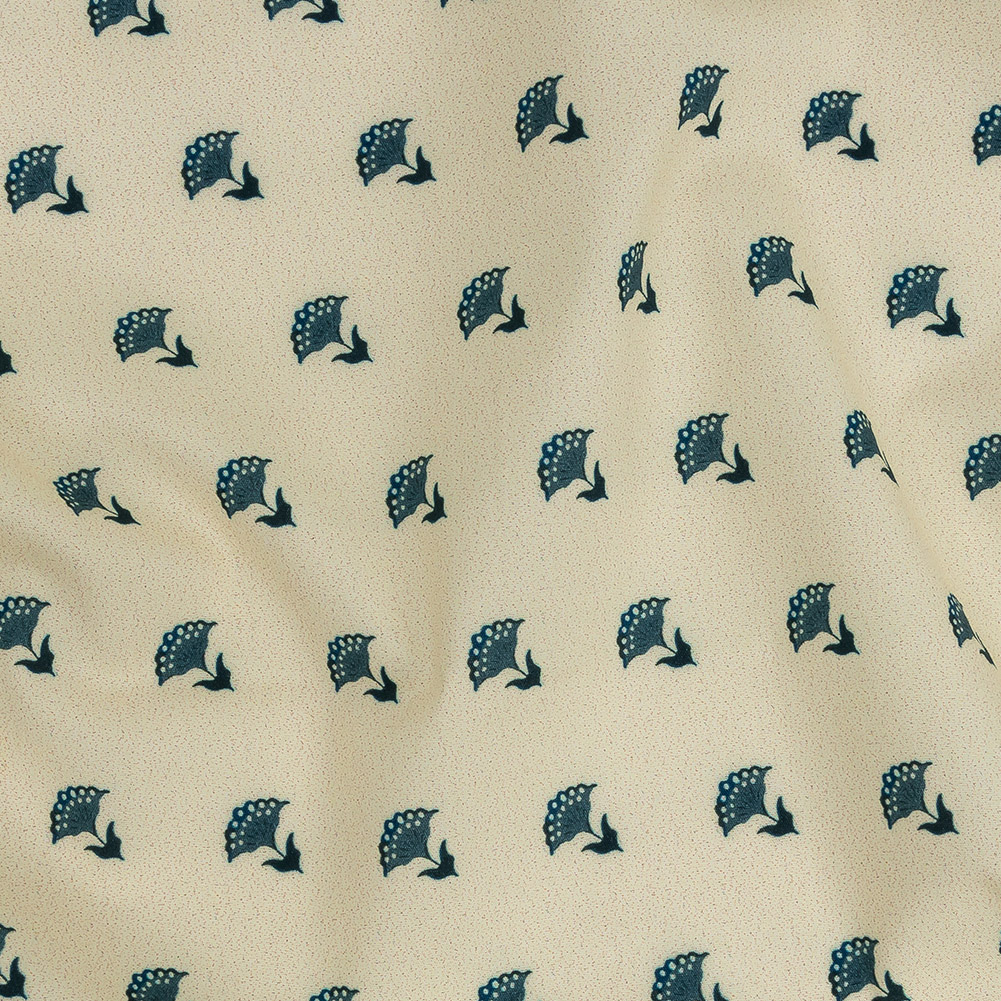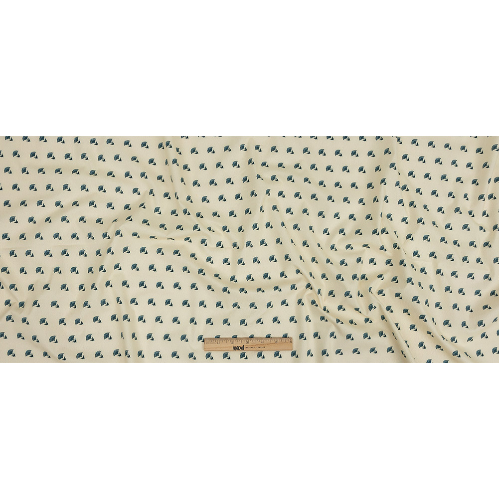 Beat the summer heat with our Mood Exclusive Impala Floral Fans Stretch Cotton Poplin! This gorgeous poplin features a delicate fan-like motif that closely resembles flowers in a deep greenish-blue color that repeats across a luscious cream ground producing an elegantly sophisticated floral print. With a comfortable one-way stretch along the weft, the cool hand and crisp, soft drape of this poplin make it both easy to work with and remarkably polished. Create the perfect button-down shirt, a comfortable yet chic shirt dress, or any variety of youthful, warm-weather designs with this stunning print. Notably translucent, a lining may be necessary for modesty as well as adding structure to your favorite designs!