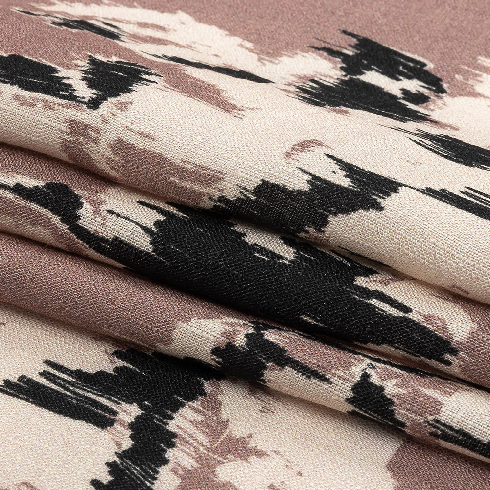 Slubbed Viscose Woven Print - Mauve, Black and Cream Ikat Floral - Mood Exclusive Layers of Luxury