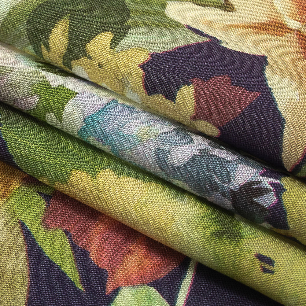 When you’re planning your next projects, why not turn your thoughts towards our Mood Exclusive Towards the Tropics Tencel Woven? Blossoming over a navy blue ground, vibrant hibiscuses, lilies, and hydrangeas are painted in sublime detail, showing off their yellow, green, and pink hues.