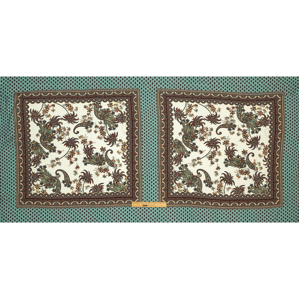 Sustainable Viscose Crepe Panel - Teal and Burgundy Paisley Decorative Squares - Mood Exclusive Destination Dubai