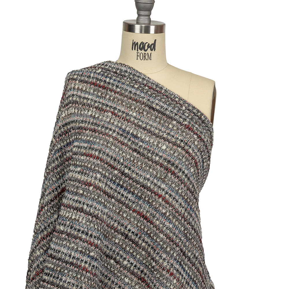 Caviar, Tofu, Red and Blue Tweedy Stripes Wool and Cotton Sweater Knit