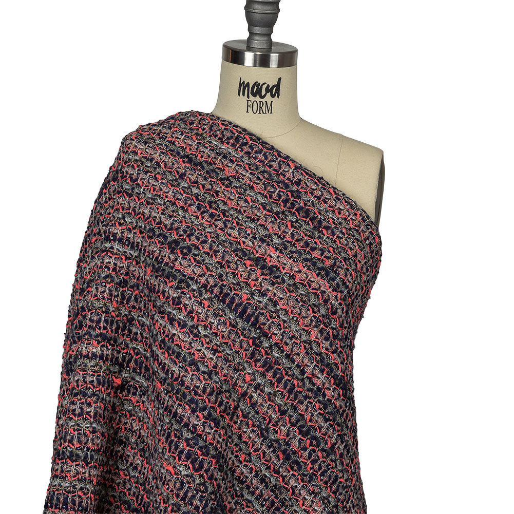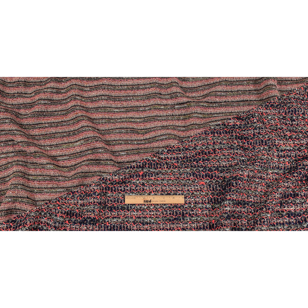 Italian Navy, Beige and Neon Pink Striped Boucle Blended Wool Sweater Knit