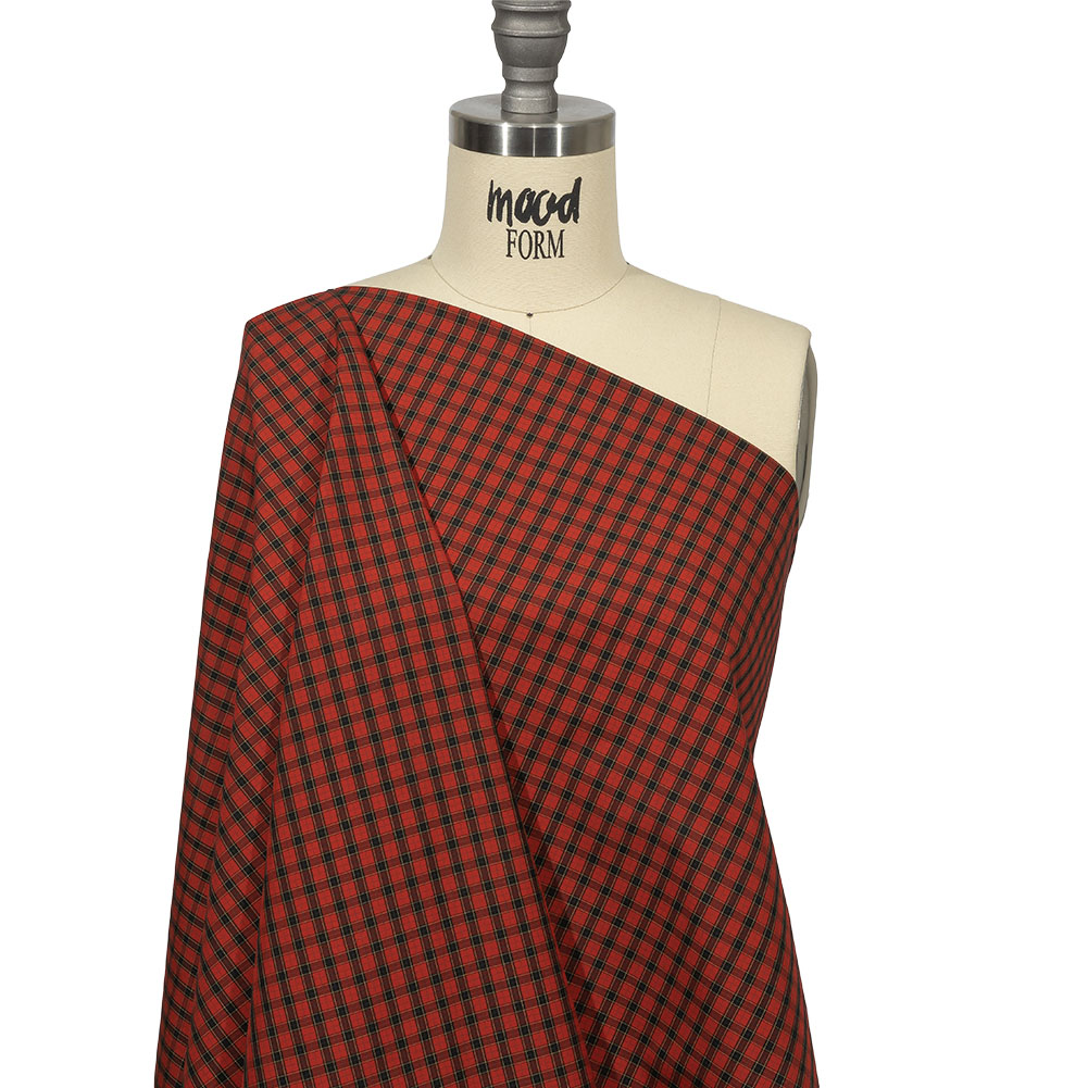 Imagine hunting in the highlands of Scotland or scrolling through ancient manuscripts, all while looking fabulous in this Italian Red, Black and Yellow Checked Cotton Shirting from Balenciaga! Vibrant red and yellow meet muted black and gray for a preppy, eye-catching pattern. Crisp, pliable and lightweight, wear this cool, soft cotton as a button-down shirt, 50's inspired shirtdress, or even a dark-academic inspired kilt. Opaque, a lining is not necessary for topweight applications.