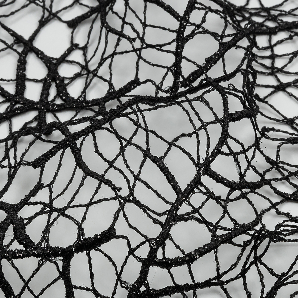 Own that bold, villain(ess) look with this Black Webbed Branches Glitter Guipure Lace ! Designed with a web of thinner threads holding a thicker branch-like pattern, the face of this intricate lace features a somewhat coarse hand thanks to a finish of black glitter on its surface, while the reverse allows lumino black threads to shine.