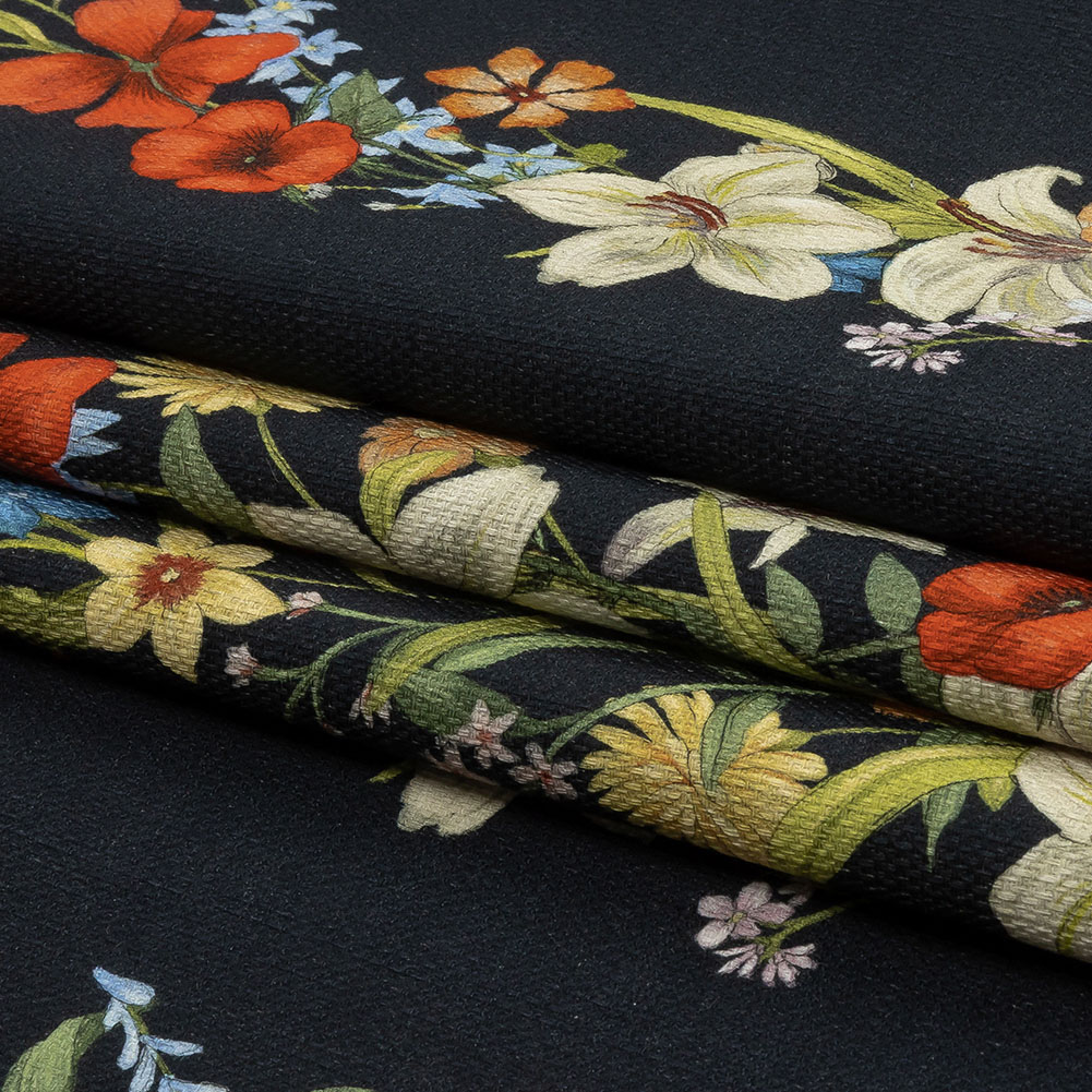 Mood Exclusive Navy Wildflower Fields Stretch Cotton Woven