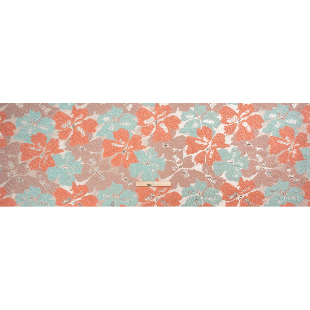 Metallic Silver, Coral and Turquoise Floating Blossoms Luxury Brocade