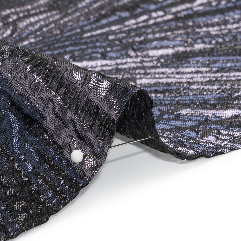 Metallic Gunmetal, Black and Navy Radiating Lines Luxury Brocade