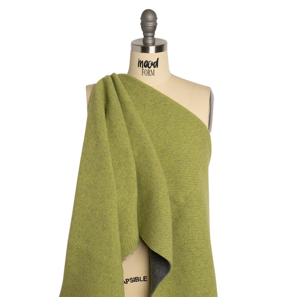 A new season calls for a new staple; find one in this Italian Kiwi and Gray Brushed Wool Blend Double Cloth Twill Coating. Fuzzy, soft, and malleable in drape, the gray and lime twill faces inspire accent lapels and cuffs or even reversible jackets. A lining may increase comfort and warmth. An easy way to elevate your look while staying warm, wool coats bring a chic maturity to your street, corporate, or formal style. The impact of a wool coat—be it oversized, fitted, wrap-around, or trench—is timeless, promoting practical fashion through a heavyweight feel. Though the wind is sharp, you’ll suddenly find yourself eager to walk the cold city streets in your new winter staple... (thank you, Mood!)