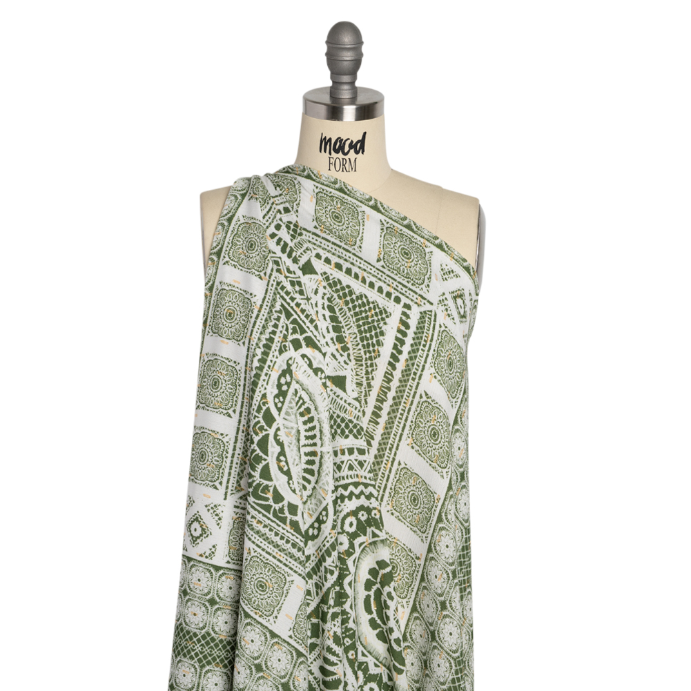 Mood Exclusive Grass Green Tapestry Tiles Metallic Dotted Crinkled Viscose Crepe Panel