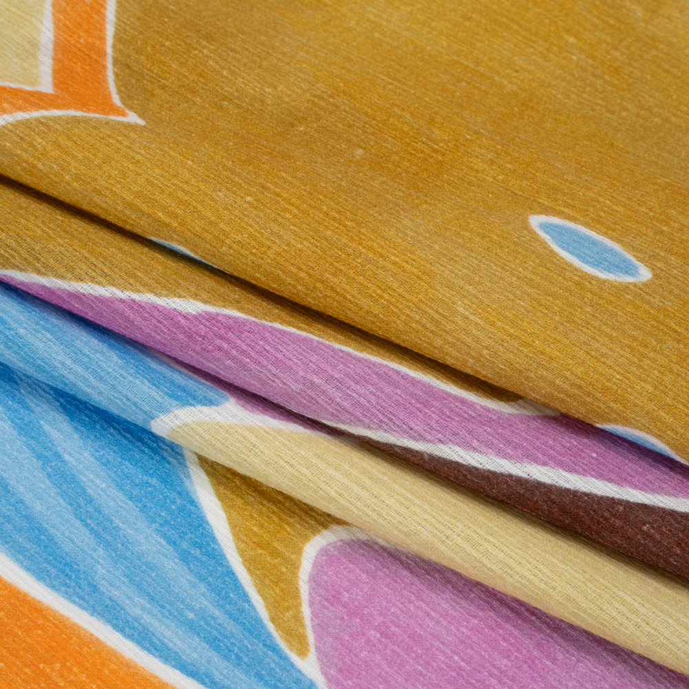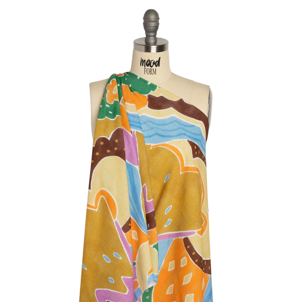 Slubbed Viscose Woven Print - Orange and Blue Leaves - Mood Exclusive Tropical Tango