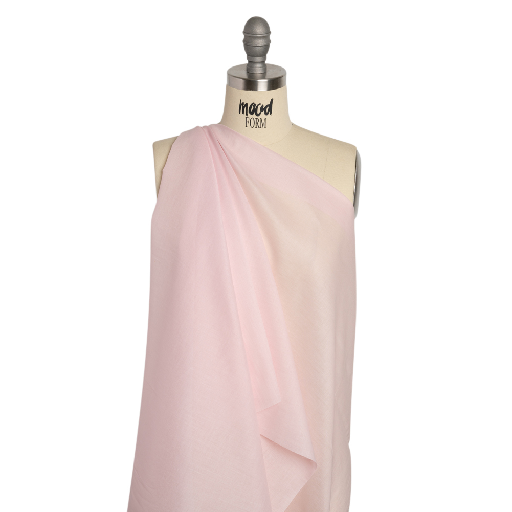 Encourage effortless elegance with this Famous Australian Designer Pale Pink Cotton Voile Lining. Derived from the French word for "veil", voile has a history of gracing romantic occasions with its ethereal sheerness and airy drape. The baby pink face is dry and crisp, exuding an organic feel that skillfully navigates the space between luxury and simplicity. Made from 100% cotton, this naturally breathable fabric acts as a perfect lining to add a bit of refinement to your summer dresses and skirts. Plus, from wedding garb to accessories, you can also fashion bridesmaid dresses, tiered skirts, scarves, and even lingerie!