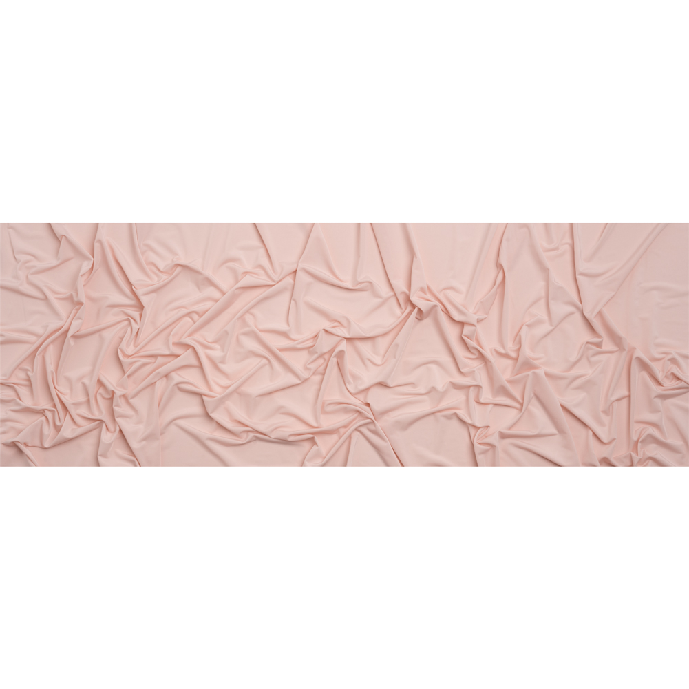 This Famous Australian Designer Light Pink Stretch Polyester Jersey is a dainty addition to your go-to garments. The luster and incredibly soft hand romanticize your casual mornings and bring comfort to your active days, seamlessly adapting to your body's every move with a 50% all-way stretch. The fluid drape and pale pink coloring provide style versatility, allowing you to embrace a sporty look with biker shorts, exude confidence in bodycon dresses, or unwind in bralettes and flared leggings. Please note that this fabric is translucent.