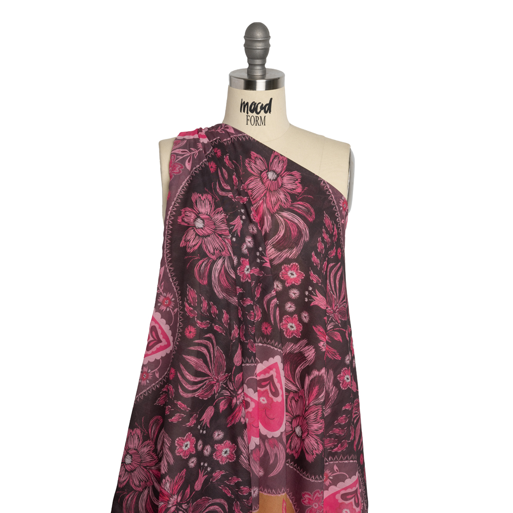 It tickles our hearts to welcome our Mood Exclusive Happy Hearts Cotton Voile to your wardrobe; a vision board of love and joy. Wavy sections are decorated in ornate flower structures, some with an embroidered look, while others house happy hearts bursting with flames to create a playful and edgy personality. This fabric has a soft, dry hand that rests comfortably on your skin in all temperatures—thanks to voile's lightweight nature and cotton's breathability. With its airy drape, you can create tiered sundresses, blouses with ruffled sleeves, breezy maxis, and more! Transparent; a lining may be desired depending on the project.