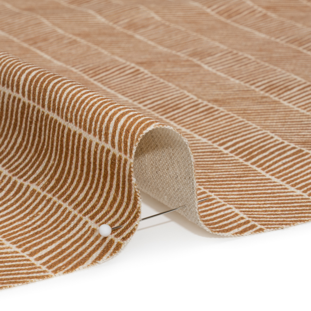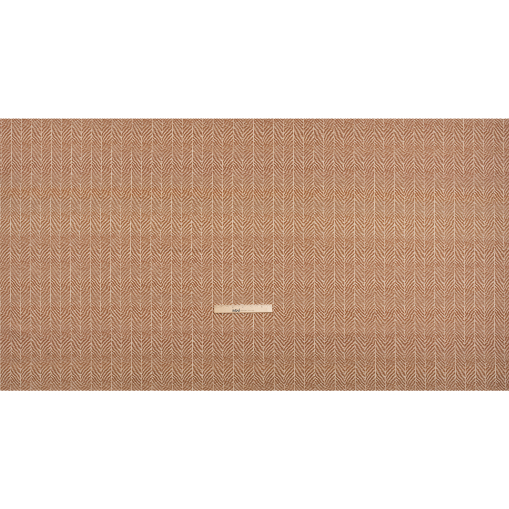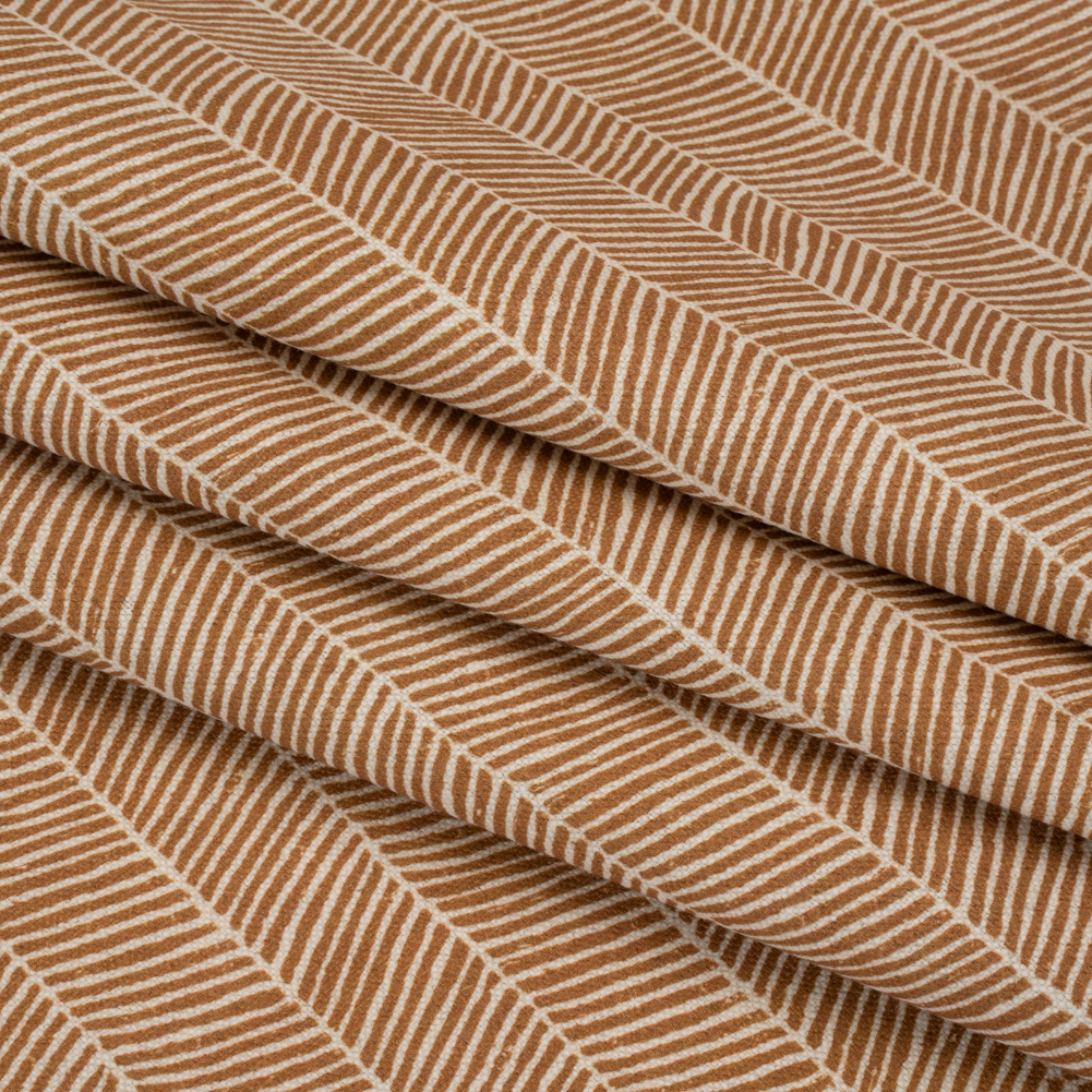 With a blend of linen and cotton fibers, this Spice Painterly Herringbone Brushed Canvas offers a soft hand and semi-structured drape. The print features painterly burnt orange stripes covering a beige background in a herringbone pattern.Suggested Projects: Drapes, Valances, Light Upholstery, Tote Bags, JacketsContent: 85% Cotton, 15% LinenStretch: NoneOpacity: Semi-TranslucentBring this dynamic fabric into your interior designs! The artist in you is drawn to canvas, a versatile fabric that presents itself like art, curating ease and refinement in your home. The natural fibers are brushed to exaggerate their best qualities, leaving the hand wonderfully soft with just a slight hint of dryness—as expected from cotton. It is relatively lightweight, features a malleable drape, and is semi-translucent; a lining may be desired for added opacity.Canvas isn't just about being the perfect fit for your interior aesthetic; it's renowned for its durability as well. Here are two tips for sewing this timeless fabric: Heavy-duty thread and needles work best with thicker textiles.As always, test on a scrap. You may need to adjust machine settings and stitch length.