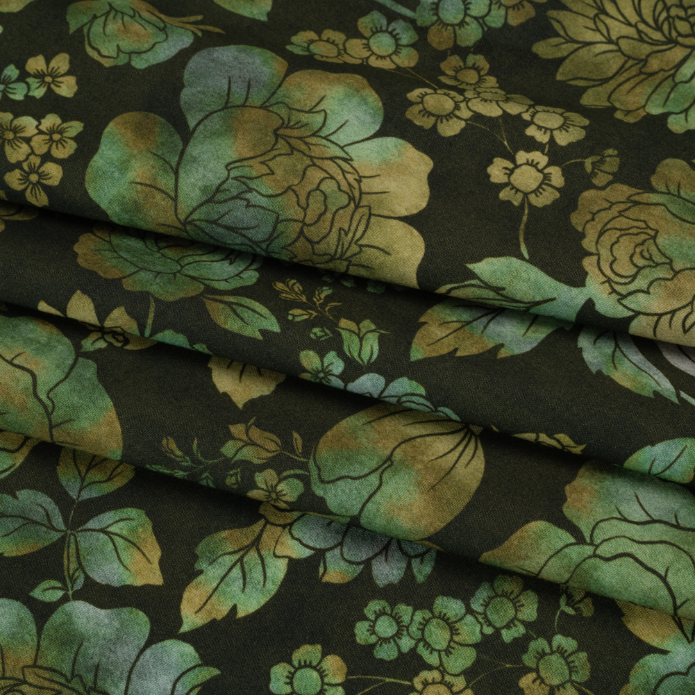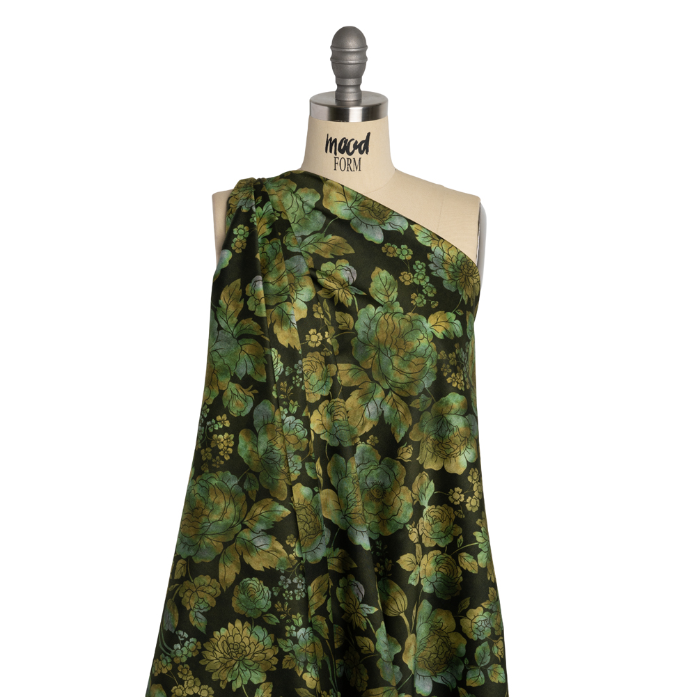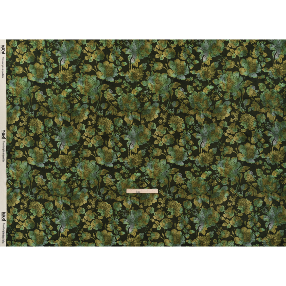 Stretch Cotton Sateen - Green, Olive and Navy Floral - Secret Garden Print - Mood Exclusive Acadia Collection