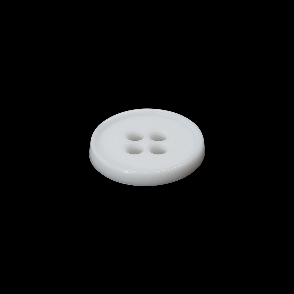 Plastic 4-Hole Button Made in Italy - 24L/15mm - White Narrow Rim
