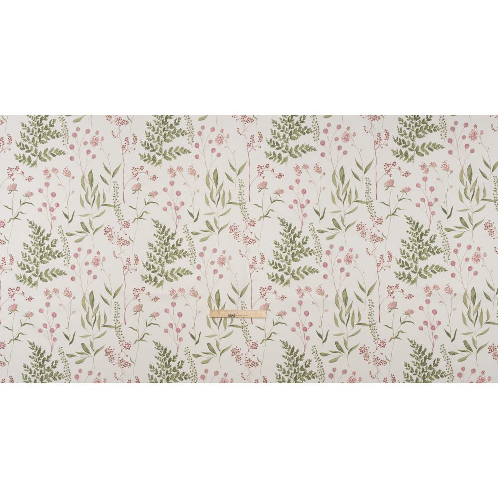 Delicate, fae-inspired interiors are just a stitch away with this Peony Painted Wildflowers and Leaves Printed Cotton Canvas—featuring a smooth, lightly tactile hand and semi-structured drape.Suggested Projects: Curtains, Throw Pillows, Headboards, JacketsContent: 100% CottonStretch: NoneOpacity: Slightly TranslucentWith a scientist’s mind and an artist’s eye, behold the botanical diagrams of wildflowers and leaves painted atop this cream canvas in hues of peony pink and sage green. The artist in you is drawn to canvas—a fabric that sways between rustic and refined, offering itself easily to living rooms, kitchens, bedrooms, and even wardrobes. With a smooth, lightly tactile hand and semi-structured drape, it’s ideal for drapery and light upholstery projects like headboards, throw pillows, and curtains, or go the fashion route with structured jackets and tote bags! Slightly translucent, a lining will increase opacity and structure.