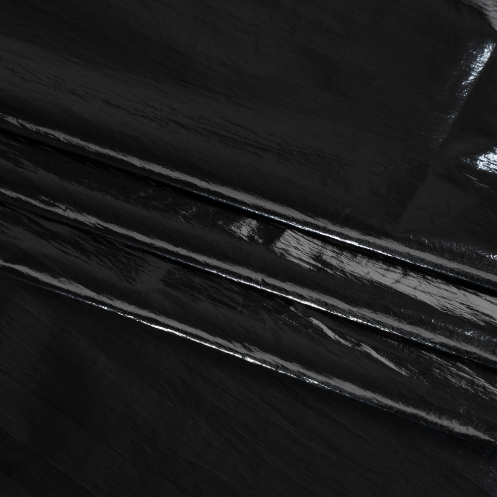 You’ll go black to this Black Faux Tyvek time and time again—featuring an ultra-smooth, sleek hand and crisp yet flexible drape.Suggested Projects: Jackets, Bags, Wallets, PantsContent: 100% Polyurethane, 100% NylonStretch: NoneOpacity: Mostly OpaqueLooking for the Tyvek finish without the price tag? This black faux Tyvek is your answer. Composed of polyurethane and nylon, this material boasts a lightweight and crisp yet still flexible drape, water resistance, and tear resistance—akin to its branded counterpart. With a smooth, sleek hand and glossy finish, craft windbreakers that bring futuristic fashion to the forefront, lightweight yet durable bags and wallets, and parachute pants ideal for both nightlife and outdoor adventures. Part of the Greta Collection, this faux Tyvek comes in a range of colors and finishes, so you’re sure to find the perfect hue and shine for your next project. WARNING: Cancer and Reproductive Harm - www.P65Warnings.ca.gov.