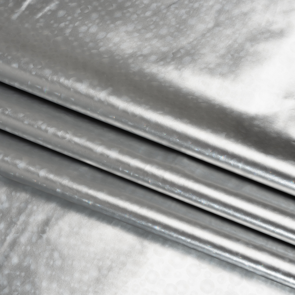 You’re sure to take a shine to this Silver Bubble Dots 3D Holographic Vinyl—featuring a sleek hand and malleable drape.