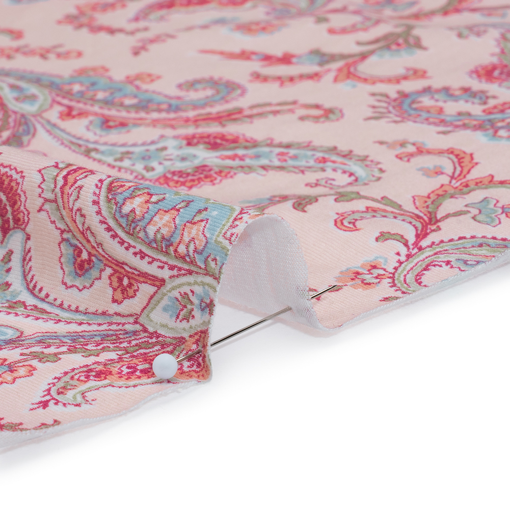 Cotton and Viscose Jersey Print – Pink, Blue and Sage Green Paisley – Deadstock