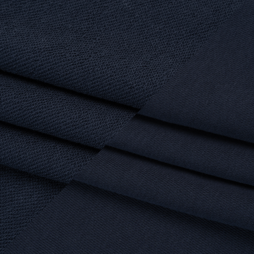 Cotton and Recycled Polyester French Terry - Navy Blue - Deadstock