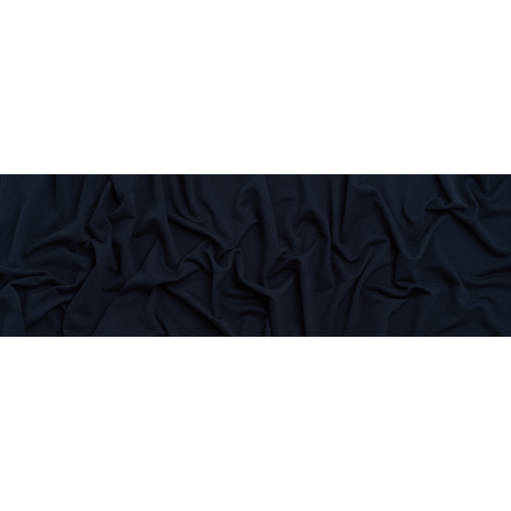 This Navy Blue Cotton and Recycled Polyester French Terry is classic, cozy, and kind to earth—featuring a soft, smooth hand and supple drape.