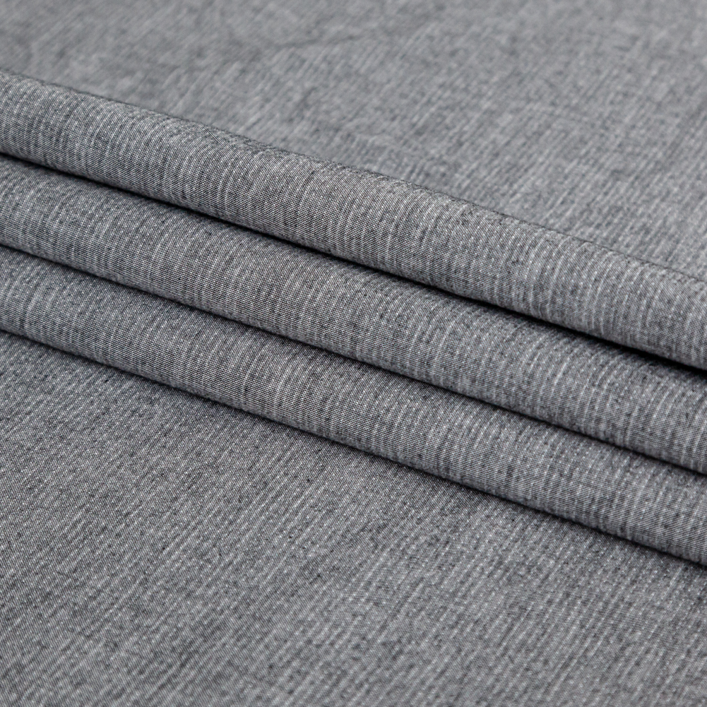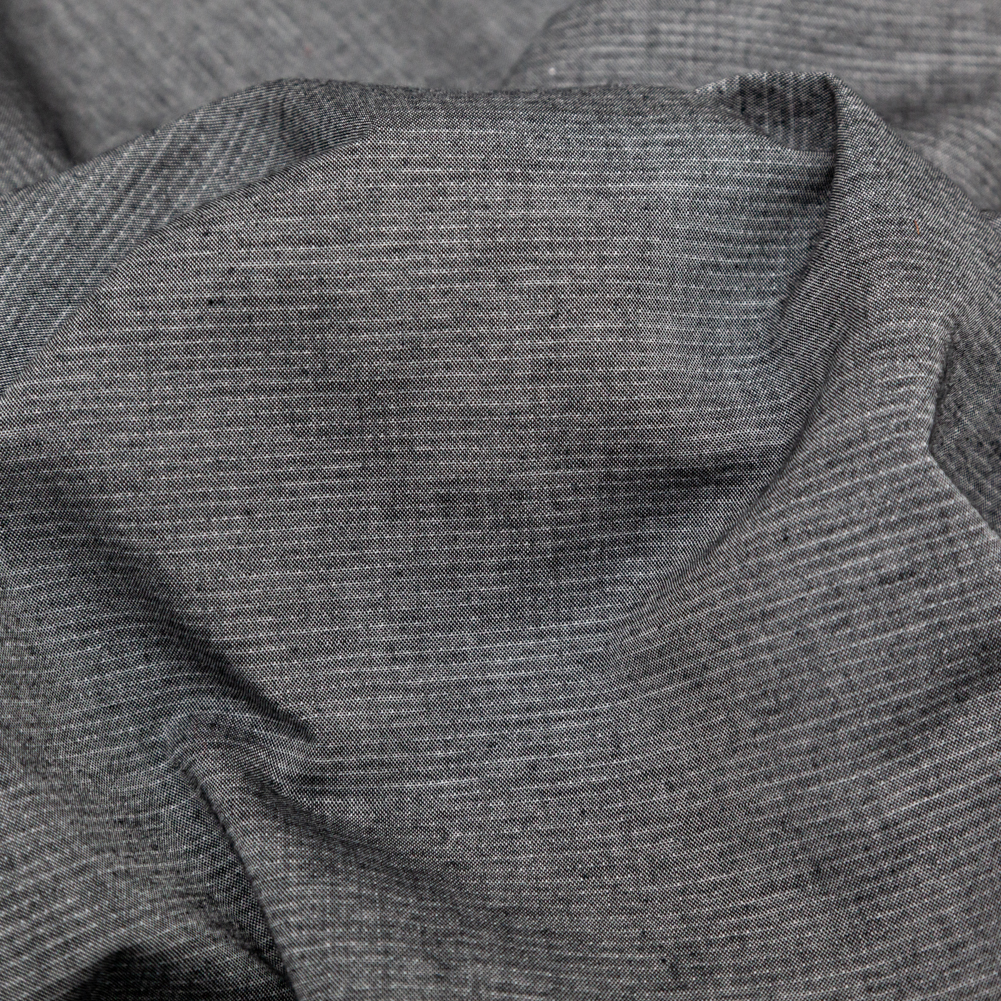 A frozen tundra rich with wind, backed by graying skies and stormy horizons, Mood's Heathered Tornado and Antarctica Reversible Perforated Cotton Chambray is much warmer than its title implies. Featuring a lovely luster reminiscent of rain-slicked windows, the smooth and soft hand permeates both sides of this fantastic fabric. Breathable and flexible in drape, fashion basic button-ups, tailored trousers, and midi dresses with princess seams. Mostly opaque, a lining is not of necessity. Please note, this fabric weighs 176 GSM.
