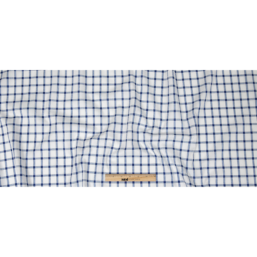 A labyrinth of squares make themselves at home on the face of this Premium Blue and White Checkered Dobby Cotton Shirting. Soft and slightly textured in hand, its large checkered patterning holds intricate stitching at every intersection, and toils with the light to provide a subtle but beautiful luster across its facing. Lightweight and without stretch, its single-ply construction boasts a thread count of 60-70, making this the perfect material for a number of shirting applications. Design clean button-up shirts to wear to work, or pursue a fancier silhouette and fashion chic shirt dresses with billowing bishop sleeves that embellish its voluminous, flexible drape.