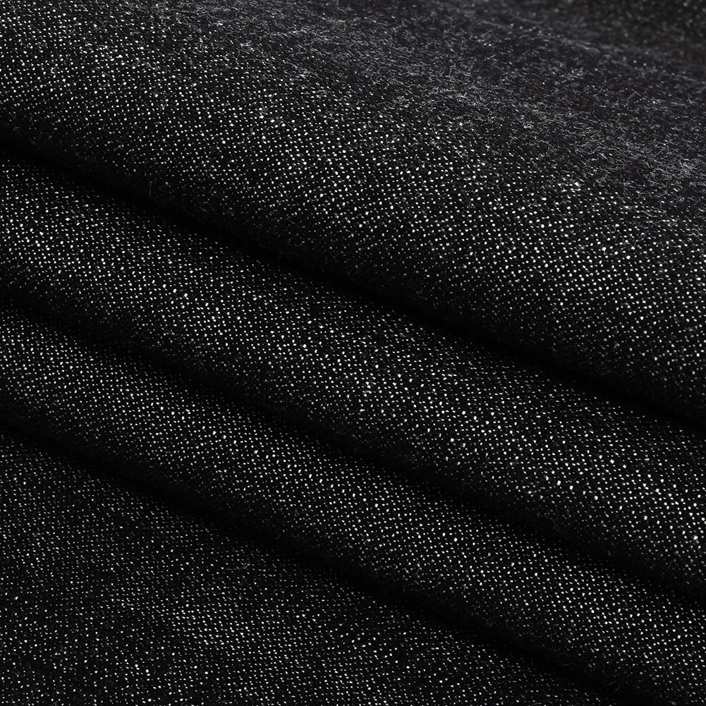 Make some noise for this fabulous Tap Shoe Cotton Denim Dobby! Due to the dobby weave, this denim appears nearly black on the face and much lighter gray on the reverse. Composed of black warp threads and off-white weft threads, the reverse feels much smoother than the crisp, lightly textured face. With a fairly stiff drape, create durable overalls for dirty work, denim jackets that hold every patch you throw at them, tote bags that hold anything, or aprons for woodworking, gardening, and other tough hobbies. Opaque, a lining is not necessary for most projects. Keep the long history of American denim alive—this fabric is made in the USA! Please Note: Pre-washing this fabric by itself before you start sewing is highly recommended, as the color may bleed extensively upon its first few washes, and in some cases, the color may fade.
