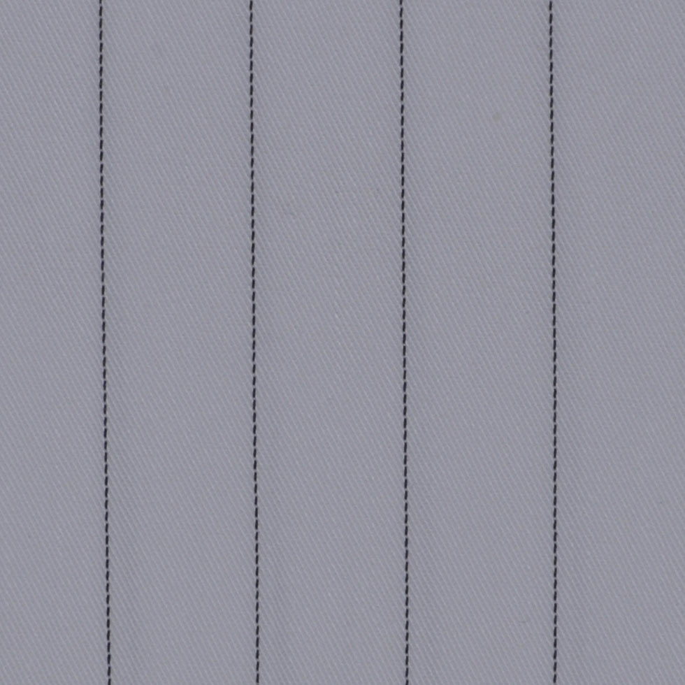Check out this fantastic material! Here we have a medium weight, cotton and lycra blended, stretch cotton twill shirting fabric with a white background and a black woven pin stripe.