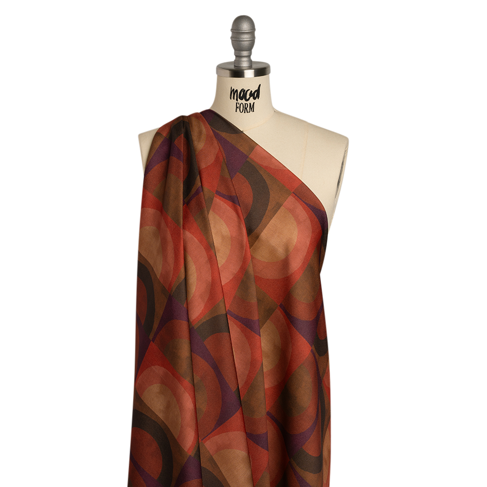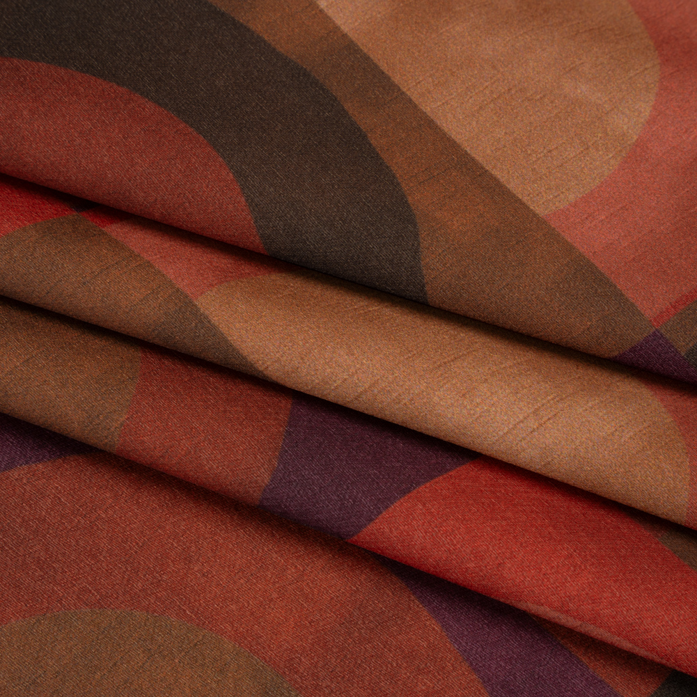 Polyester Crepe-Back Satin - Red, Brown and Purple Half Circle Blocks - Mood Exclusive Adobe Abode Print