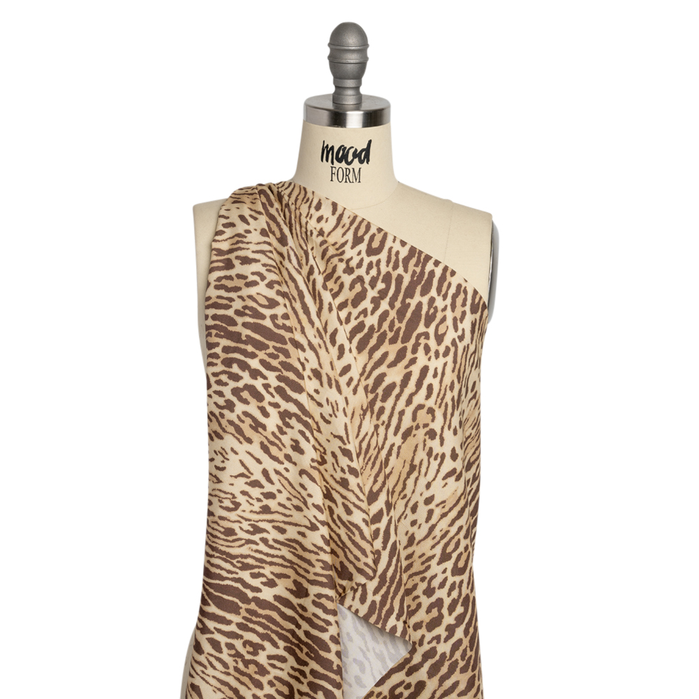 Hit the runways with this Famous Australian Designer Beige and Brown Animal Spots Silk Woven! In a perfect balance of luxury and excitement, this 100% silk fabric keeps it classy with a sleek hand and subtle luster while displaying your wild side through a leopard print. The drape is lightweight and supple, offering itself beautifully to flowing blouses, graceful midi-skirts, and more. Slightly translucent; a lining may be desired depending on the application.