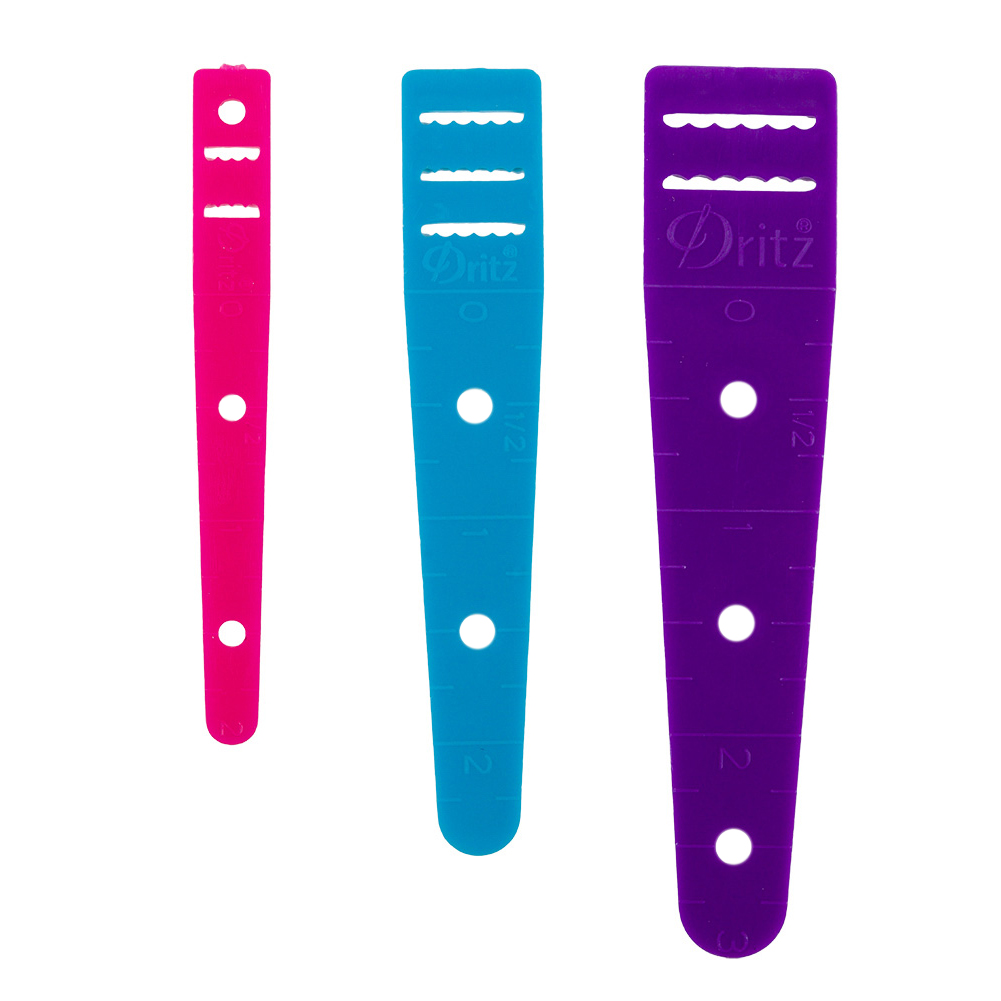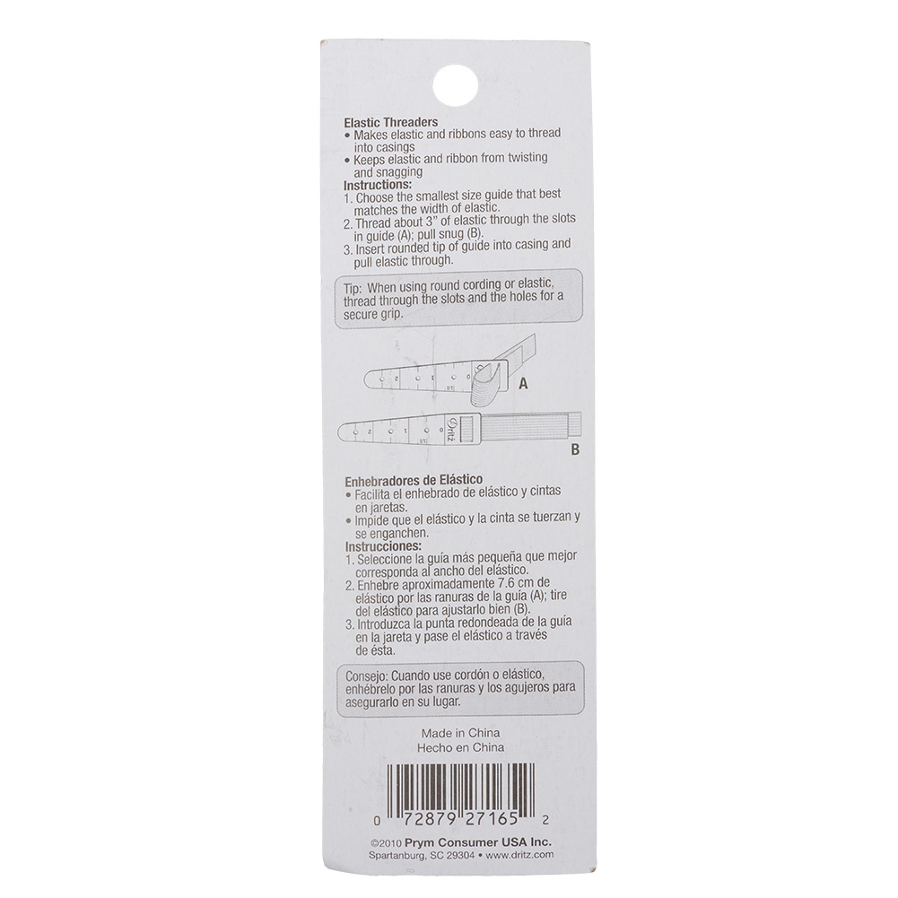 Threading elastic into casing has never been easier with this Dritz 3pc Elastic Threaders! These threaders make it easy to thread elastic into casings for waistbands, gathered sleeves, and more. In three sizes—suitable for ¼, ½, and ¾ inch elastics—simply insert your elastic into the slots as shown on the back of the package, then slide the threader pulling the elastic through your prepared casing or tube. The flat design and rounded corners prevent twisting and snagging as you work.