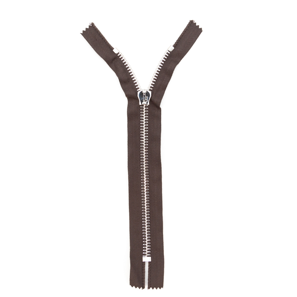 Mood Exclusive Italian Brown and Silver T8 Closed End Metal Zipper - 9"
