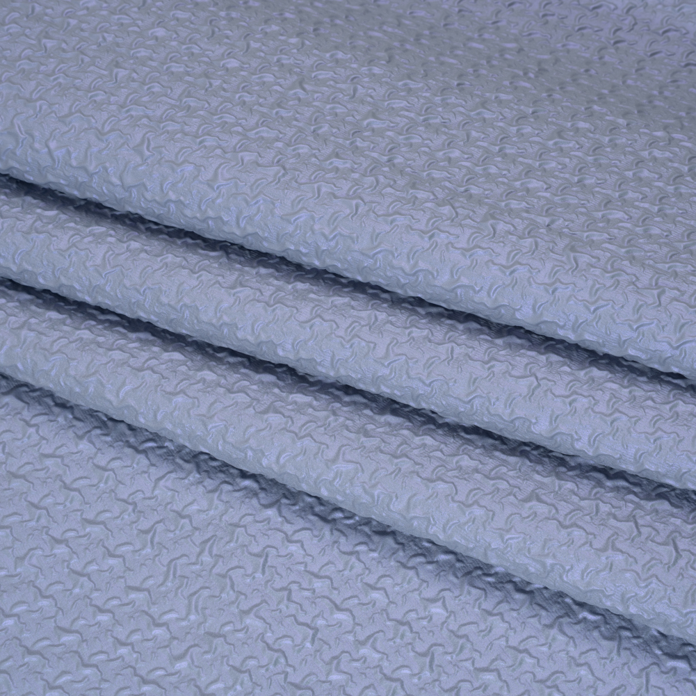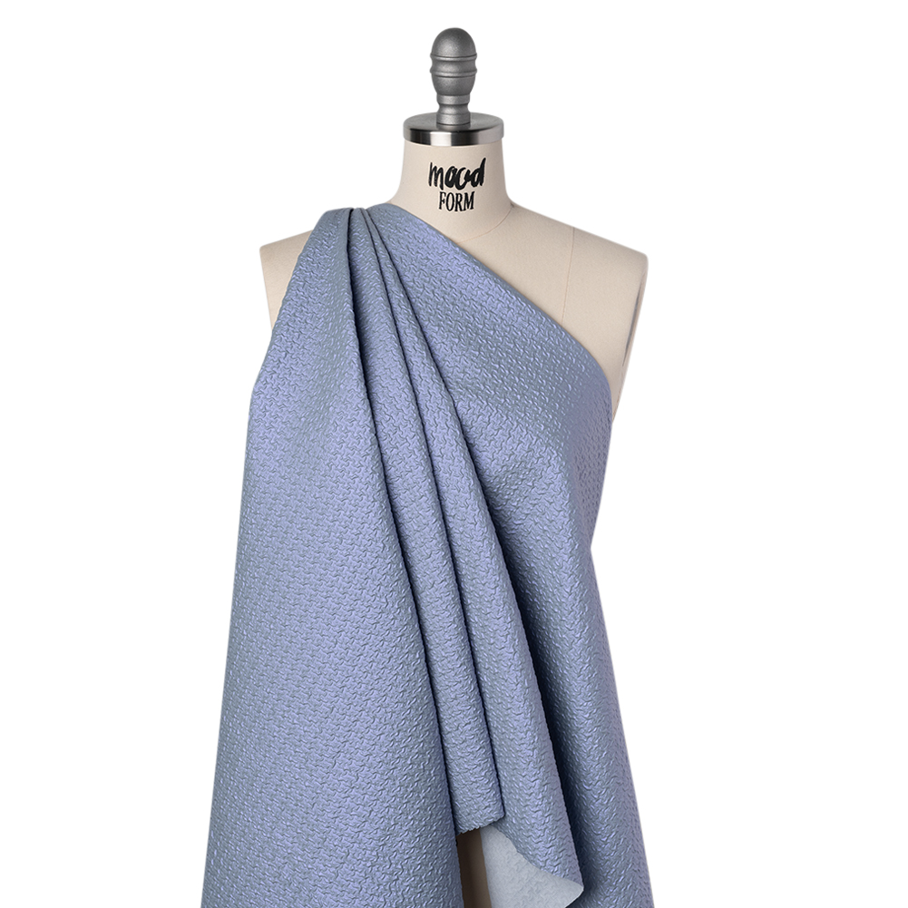 Enjoy the breezy, crisp weather in this Sky Blue Abstract Puckered Novelty Jacketing—featuring a tactile hand and slightly structured, malleable drape.Suggested Projects: Jackets, Vests, Gowns, SkirtsContent: 100% PolyesterStretch: NoneOpacity: Mostly OpaqueShield yourself from the chill—or the flashing cameras—in this dazzling sky blue jacketing. Its abstract, puckered texture catches the light with every movement, while its slightly structured yet malleable drape lends itself to everything from lightweight jackets and vests to avant-garde eveningwear. Think voluminous gowns, sculptural skirts, and shimmering corset tops that command attention. Mostly opaque, a lining can elevate elegance and coverage.