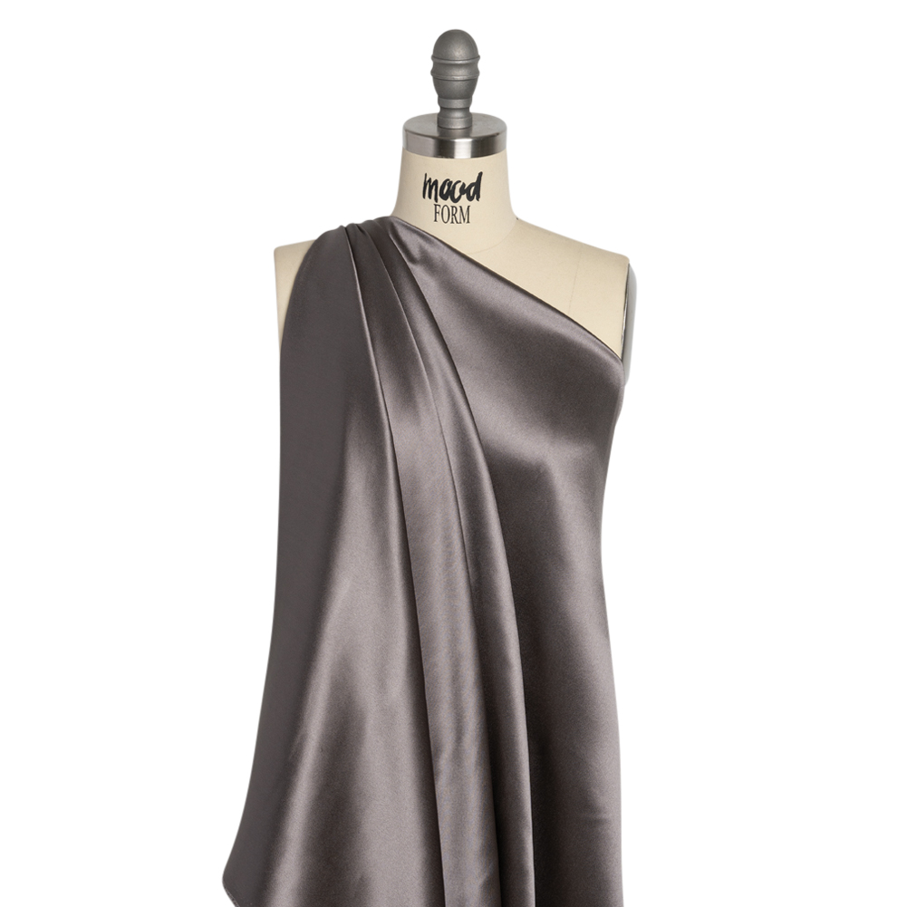 Mood's Silk Crepe Back Satin - Dark Silver - Premium Collection is a medium weight silk with a satin face and a creped weave on the reverse face. With an exquisite, full-bodied drape and a lovely sheen, make sumptuous dresses, blouses, skirts, and special occasion garments. Available in 95+ attractive shades. Note: Dye lots are subject to change up to 10% in either direction. Ordering swatches is HIGHLY recommended for these products.