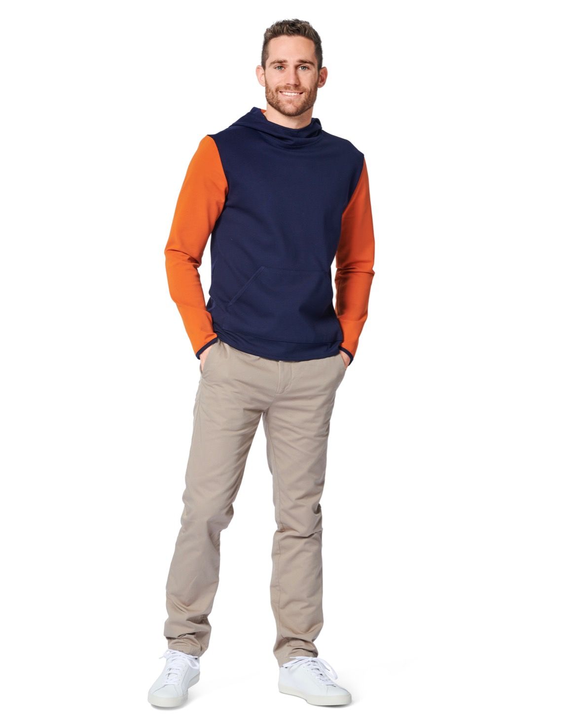 This men’s hoodie pattern allows you to easily sew popular sweaters with a personal touch. Sweater A with a hood is made interesting by the combination of two colors. On Sweater B, the neckband is made from ribbing so that it fits nicely.