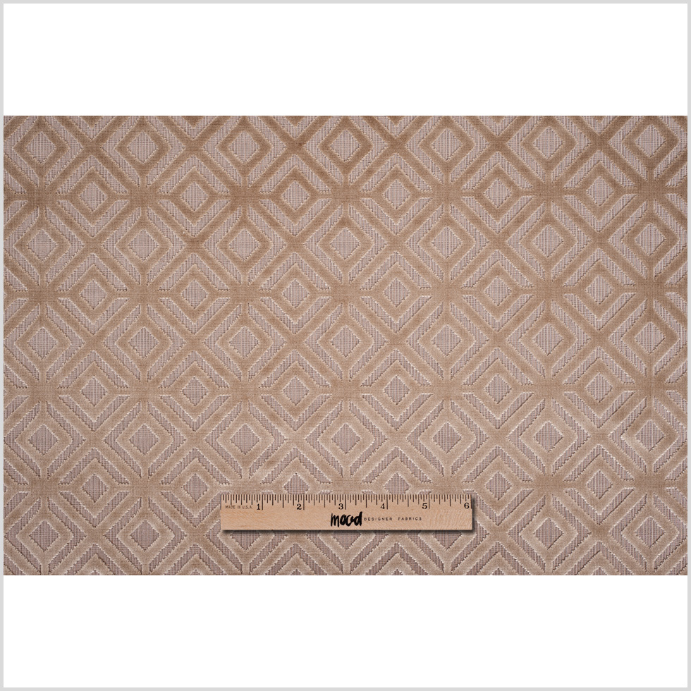 A timeless home decor fabric of geometric cut velvet. Camel.