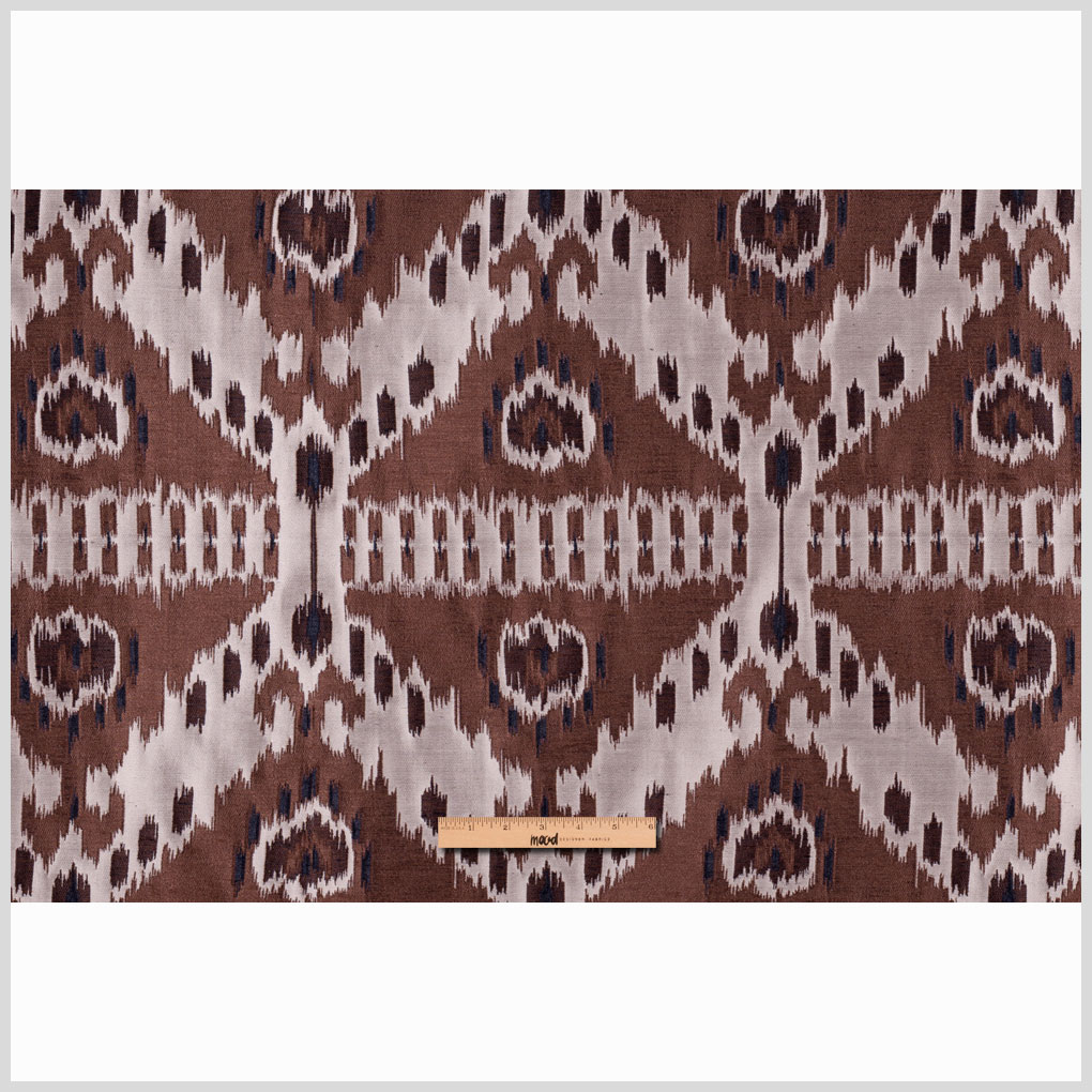 Chestnut, coffee and black come together on this woven ikat poly. WIth a lightly raised pattern, this medium-weight fabric is prime for drapery or pillow covers.