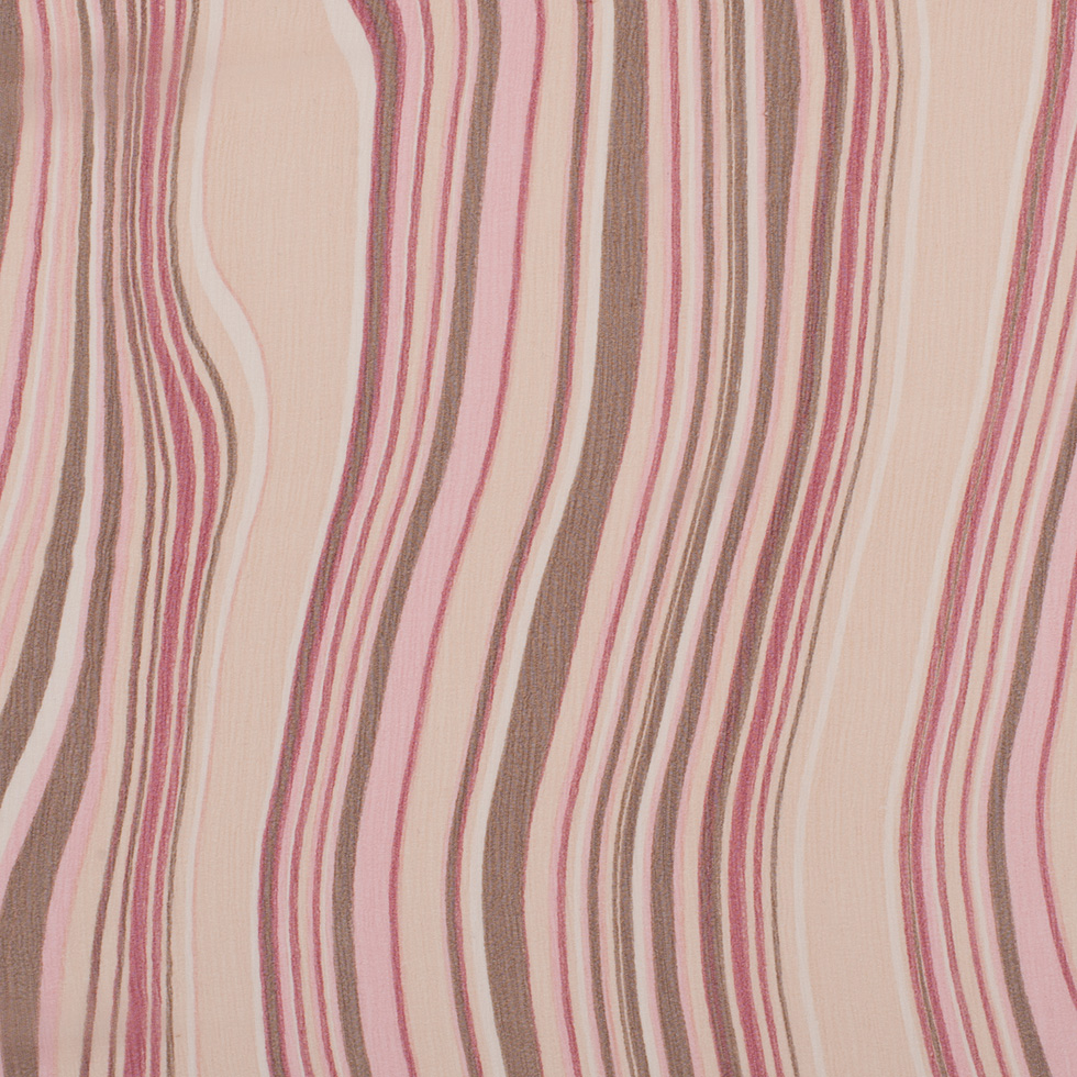 Pink Multicolor Striped Crinkled Silk Chiffon