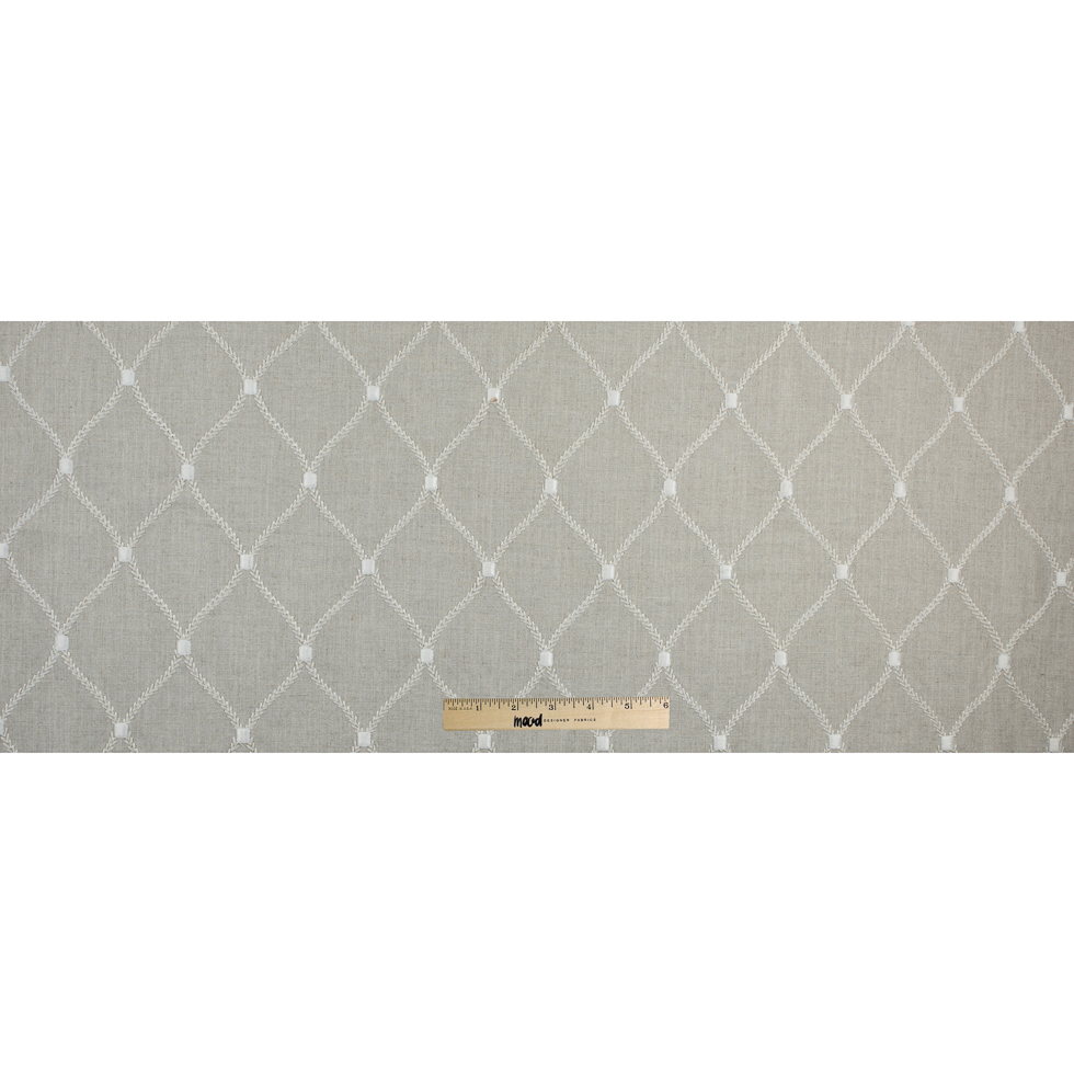 Classic in design, this rayon embroidered linen is of medium weight and features a large-scaled embroidered leaf motif perfect for decor purposes.