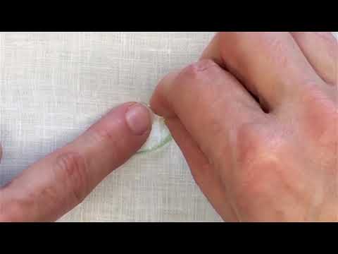 - Wrap the working thread around the needle. Gently pull the thread so the loop tightens around the shaft of the needle, snug against the fabric surface.