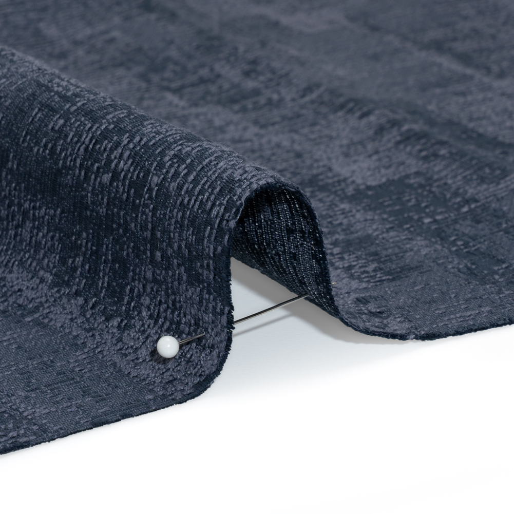 Texture your next drapery sewing project with the recycled, eco-conscious fiber content, dramatically supple drape, and soft but dimensional feel of this Danube Abstract Textures Drapery Jacquard.Suggested Projects: Curtains, Valances, Drapes, ShadesContent: 65% Recycled Polyester, 28% Cotton, 7% PolyesterStretch: NoneOpacity: Mostly OpaqueCreate serenity in your home with this Jacquard. With a distressed look, indigo threading ripples haphazardly through the lustrous blue background, mimicking the dimension of embroidery. Supple, relatively lightweight, and soft, this eco-friendly fabric dreams of tall windows to adorn, elegant bed frames to drape across, and formal dining rooms to elevate. Mostly opaque; a lining will add complete opacity and structure if desired.