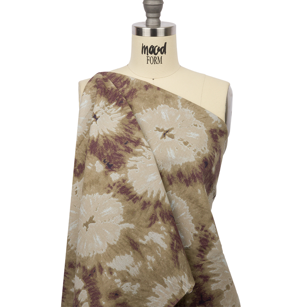 With a pattern to dye for, this Beige, Taupe and Burgundy Tie Dye Stretch Cotton Canvas is both groovy and grounded.
