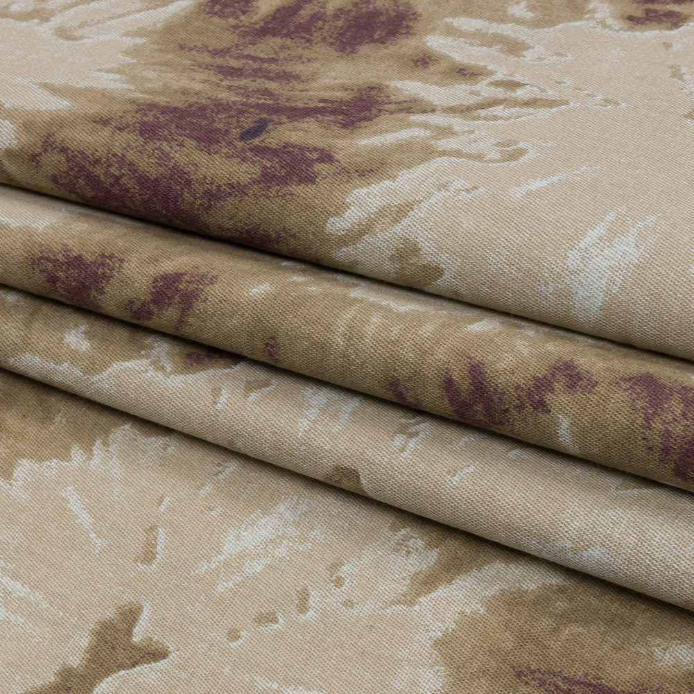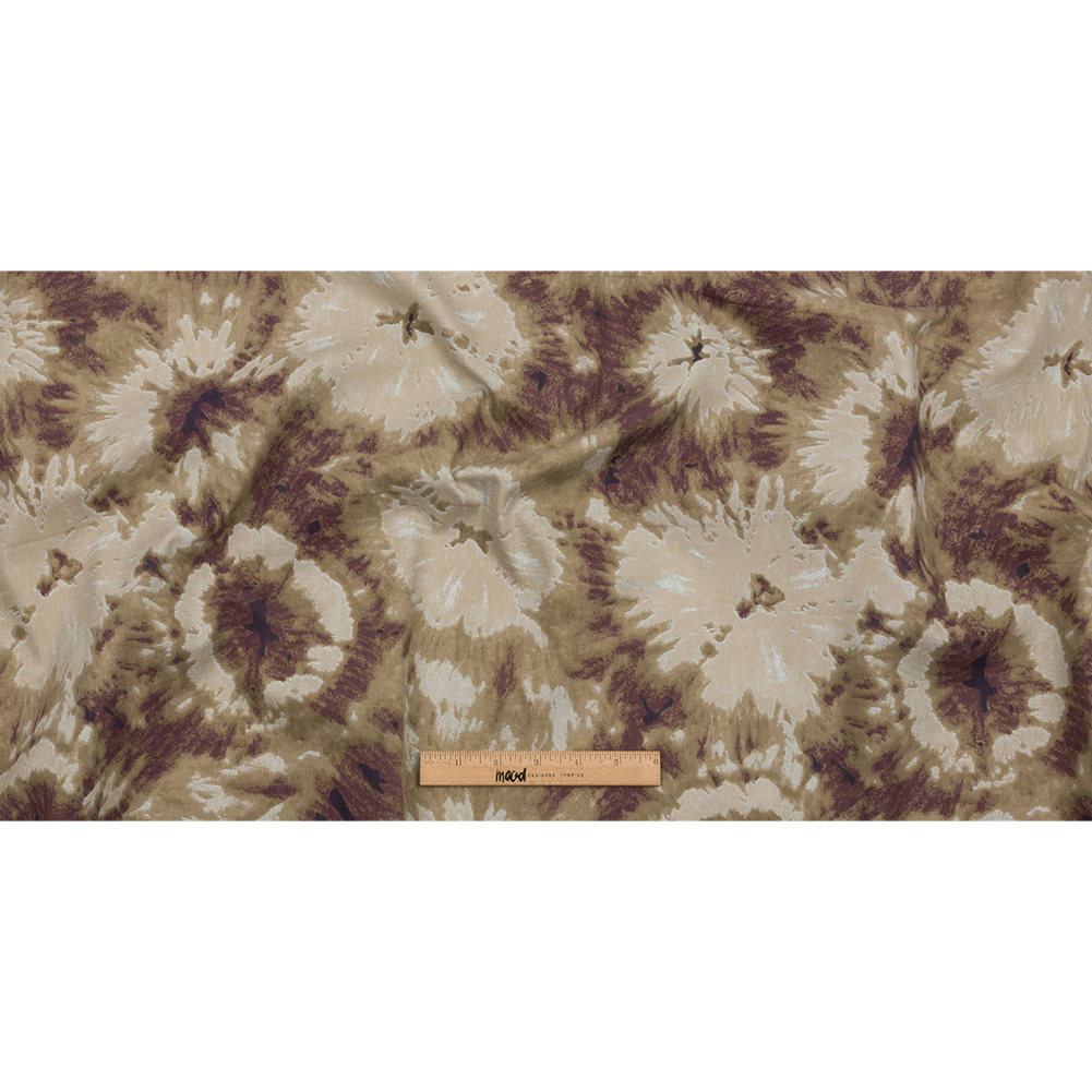 Beige, Taupe and Burgundy Tie Dye Stretch Cotton Canvas