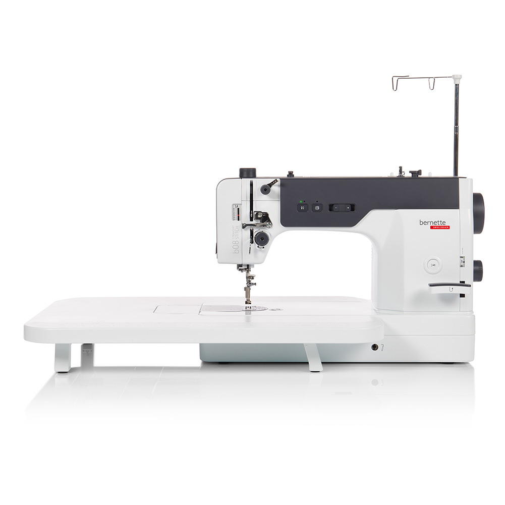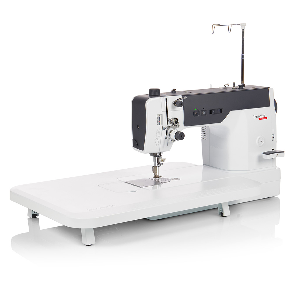Power through your projects with the bernette 08 Straight Stitch Sewing Machine. One of the fastest domestic sewing machines available, the b08 features a robust DC motor capable of 1,600 stitches per minute. Focused on the essentials, it delivers perfect straight seams at high speed and efficiency, with an automatic thread cutter for easy finishing and a sturdy metal body that minimizes vibration for unmatched stitch quality. Built to handle a wide range of fabrics—from delicate silks to heavy-duty denim and leather—it’s a true workhorse.This set includes an extension table (25.6" x 15.7" / 60x40cm), Standard Straight Stitch foot, Standard Stitch plate, Narrow Straight Stitch foot, foot controller, knee lifter, three bobbins, BERNINA Highspeed Special HLx5 needle set, Mettler starter kit (3 spools), power cable, accessory box, large and small screwdrivers, lint brush, thumb screw, cloth guide, large spool holder, spool supporter, spool net, and oil—everything you need to sew with speed, precision, and confidence.Other notable features include:6 LED Sewing Lights for optimal visibilitySpeed ControlRotary Hook SystemNeedle Stop Up/DownAdjustable Presser Foot PressureSide-load BobbinManually adjustable upper thread tensionSemi-automatic needle threaderIndependent bobbin winding motorIndustrial pre-tensionLever for reverse sewing225mm workspace to the right of the needle140mm workspace heightMaximum Stitch Length: 6mm